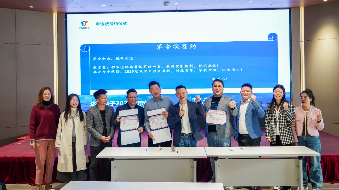 为强化责任,锁定目标,各BU总经理现场和公司签订2025年业绩军令状,誓以行动践行誓言,敢于承诺,说到做到!