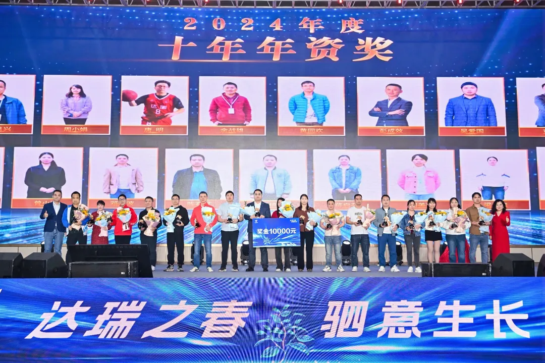典礼特别设置了年资颁奖环节,对在公司工作满十年及以上的员工进行了表彰。老员工们用自己的青春和汗水为公司的发展做出了巨大贡献,他们的坚守和奉献成为了公司宝贵的财富。